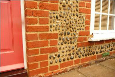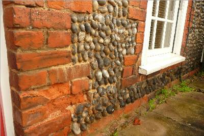 Below: Eve Cottage Brentwood. (Before) Brickwork and flintwork repointed with a lime mortar. (After)