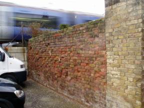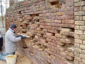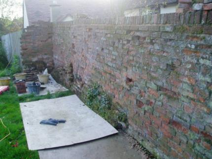 Below: Old wall in need of cleaning and repair... damaged brickwork was repaired then cleaned and repointed with a lime mortar flush joint