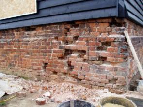 Below: Brick repairs and repointing to a listed barn in Essex.
