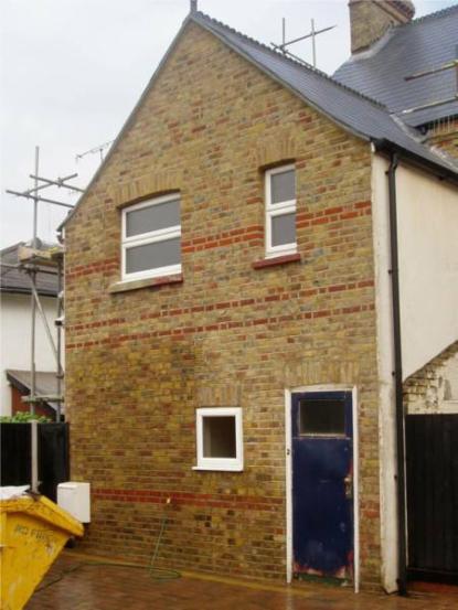 Below: An end terraced house in Southend Essex. Stone cladding removed, bricks replaced, then cleaned and repointed.