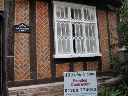 Below: Listed Old Boys School, Braughing, Hertfordshire. Timber framed with brick infilled panels repointed using lime mortar