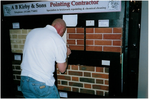 Below : A B Kirby & Sons demonstrating tuckpointing at the Hatfield House Listed buildings and conservation exhibition 2006.